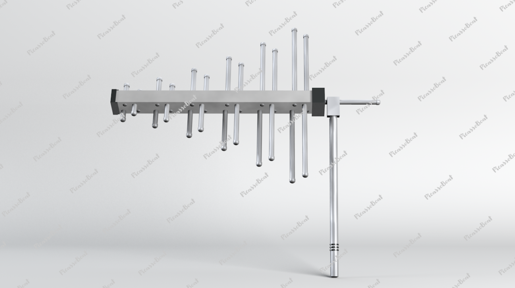 High quality image of a log-periodic antenna, designed for wideband signal reception and transmission in communication systems. The antenna’s distinctive, multi-element structure enables it to operate efficiently over a wide range of frequencies, making it ideal for use in telecommunications, radio, and broadcasting applications.