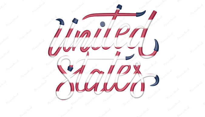 United States calligraphy text with flag